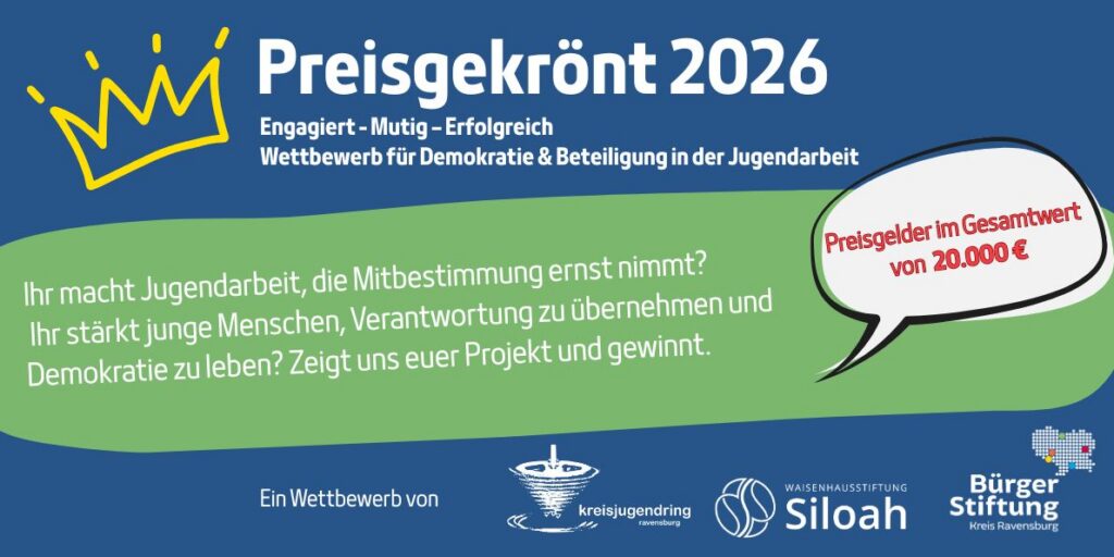 Wir freuen uns auf eure Beiträge und darauf zu zeigen, wie stark, kreativ und demokratisch die Jugendarbeit im Landkreis Ravensburg ist.